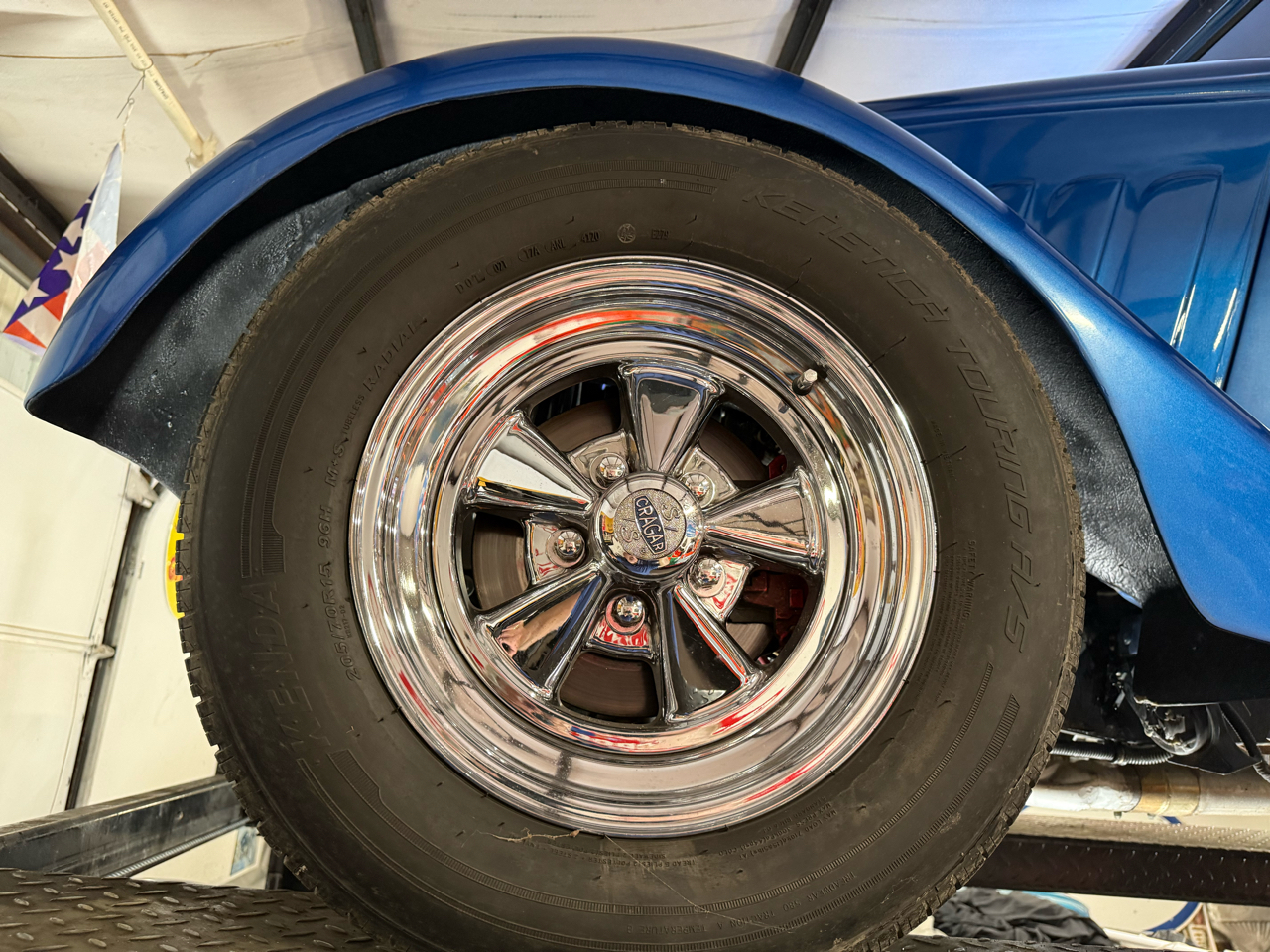 Well built absolutely gorgeous Mickey Thompson sportsman tires with chrome five Crager wheels. Beautiful grey bucket seat interior that’s diamond double stitched door panels headliner and seat covers. LS 3 6.0 EFI 4l60E transmission push button shifter in the console, power windows, power steering, and air conditioning In price right at only $39,900